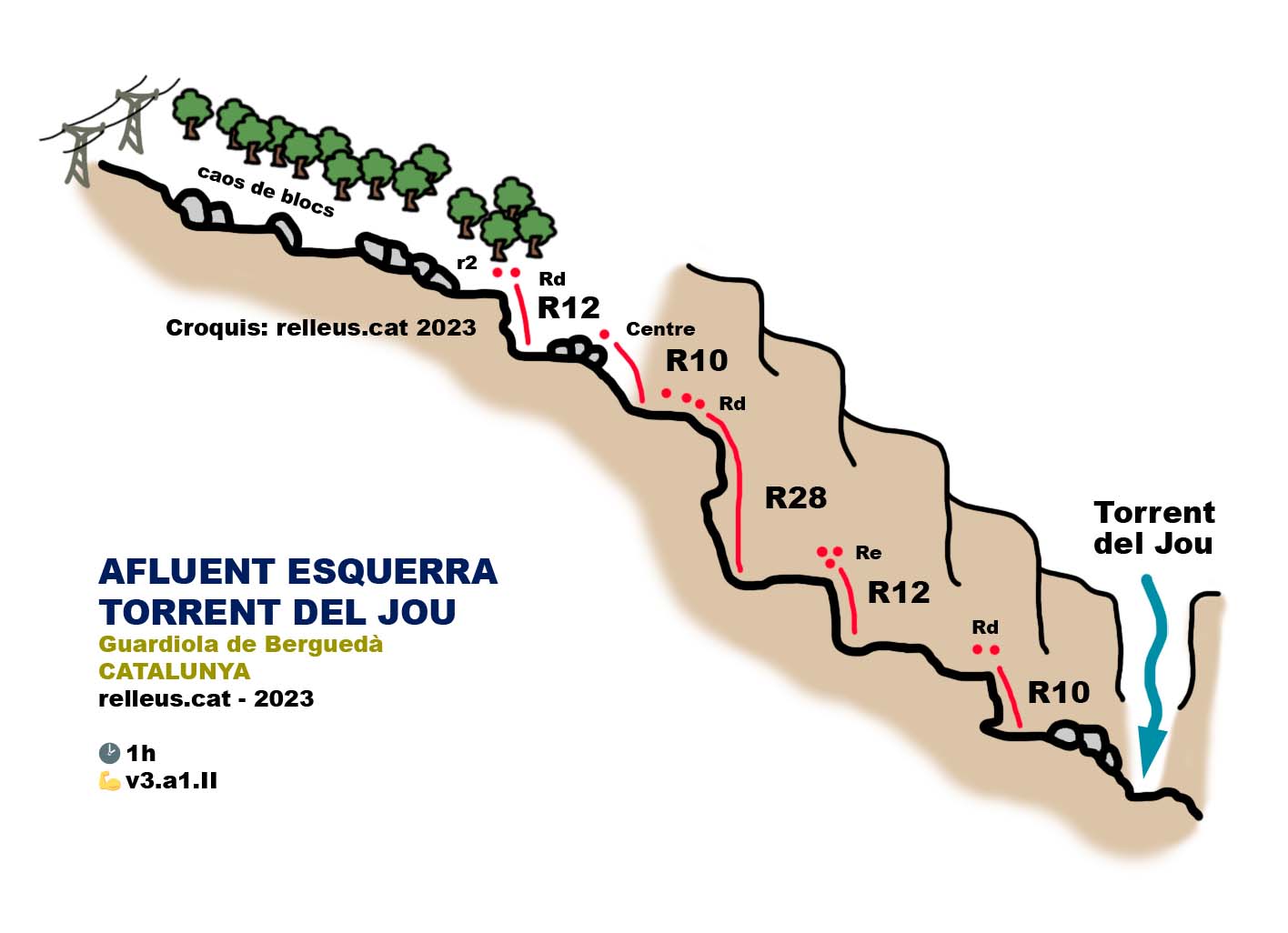 Podeu trobar el que manca de descens a la nostra entrada del Torrent del Jou, però n'expliquem també aquí el que queda de descens a groso modo.