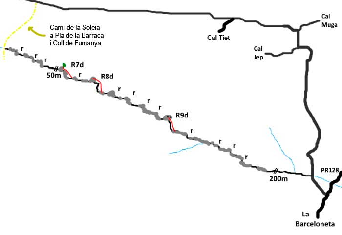 Ens dirigirem cap al poble i en coronar els preciosos cingles de la Foradada, on hi ha el mirador de Cap Deig, restarem molt atents al trencall que hi ha a la dreta indicant "La Barceloneta".